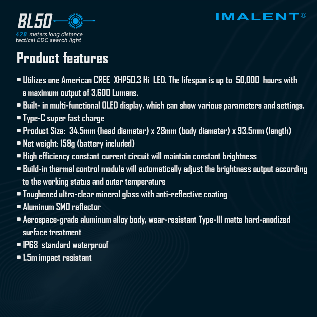 Imalent BL50 dual light sources tactical EDC flashlight: