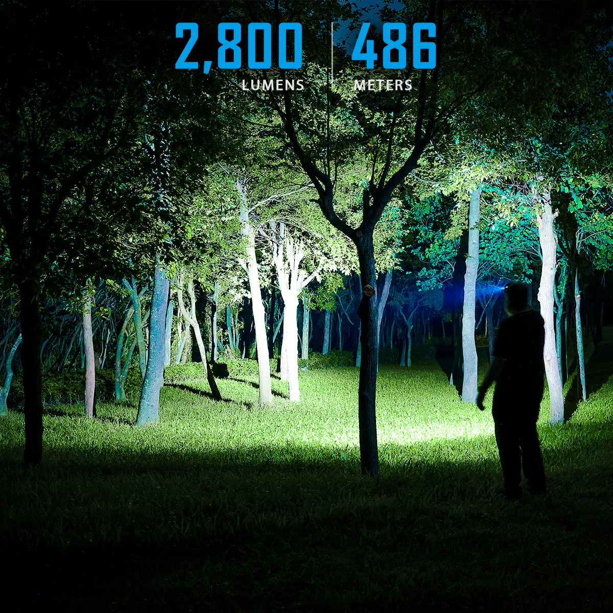 .Utilizes latest long range LED. The lifespan is up to 50,000 hours with maximum output of 2,800 lumens and longest distance up to 486 meters. Built-in 1900mAh rechargeable battery.