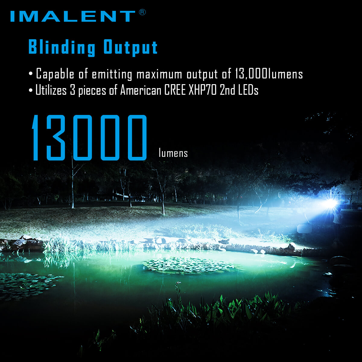 - Utilizes 3 pcs of CREE XHP70.2 LEDs with max output of 13,000 lumens.