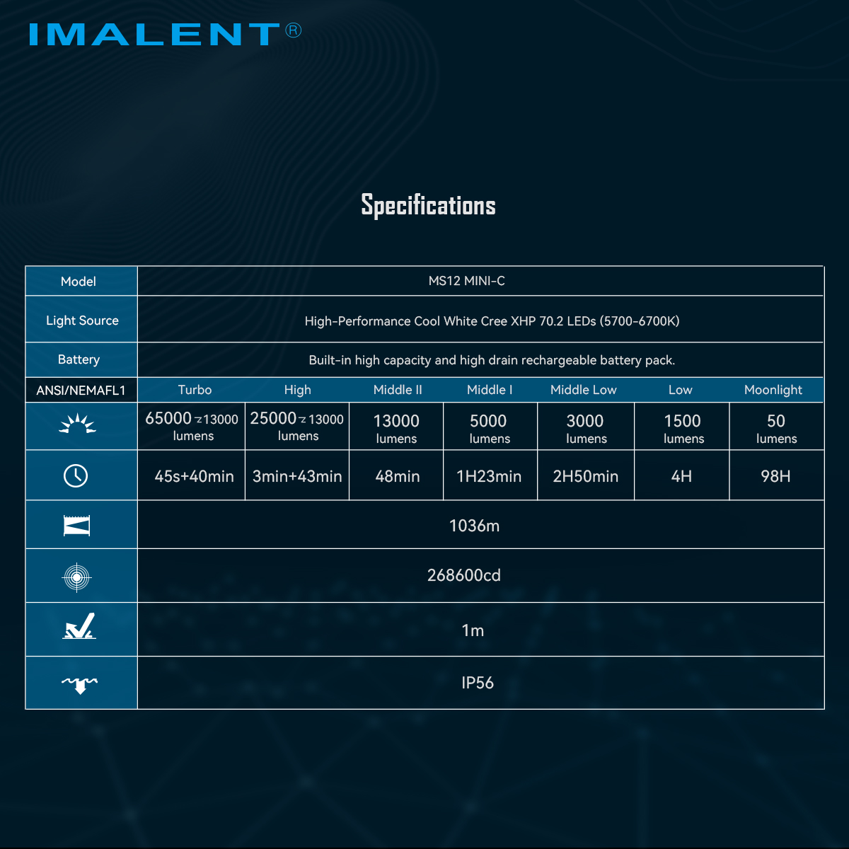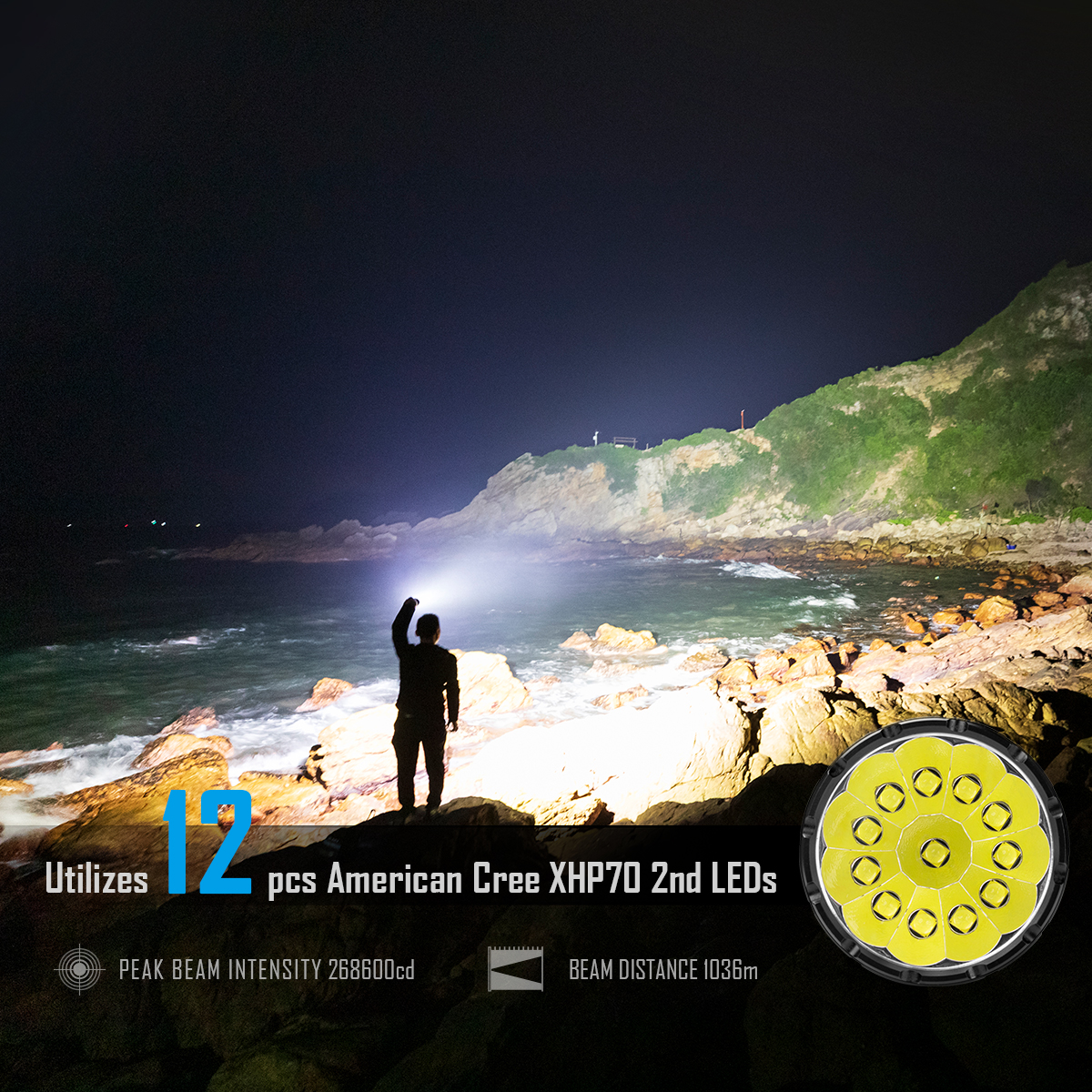 - Utilizes 12 pcs of XHP 70.2 LEDs with max output of 65,000 lumen.